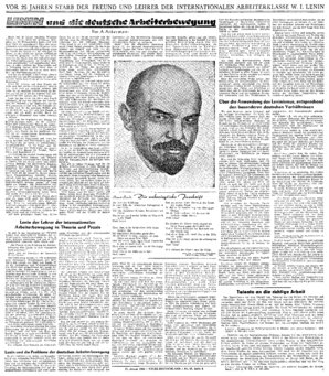 Heute vor 25 Jahren verschied Wladimir Tljitsch Lenin, einer der genialsten Menschen, üi-e die Weltgeschichte kennt, und nach Karl Marx die gigantiscnste Figur der internationalen Arbeiterbewegung. Da...
