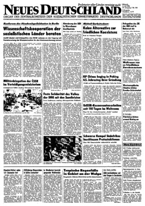 Berlin (ADN). Der Präsident *äer Volkskammer der DDR, Horst Sindermann, Mitglied des Politbüros des ZK der SED, empfing am Dienstag in Berlin die Delegation der Sandinistischen Verteidigungskomitees u...