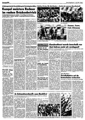 Gute Betreuung — so eine an heißen Tagen besonders wichtige Erfahrung der Meuroer Gewerkschafter — trägt zu hohen Leistungen bei. Das „rollende Restaurant", der an die Förderbrücke angehängte Speisewa...
