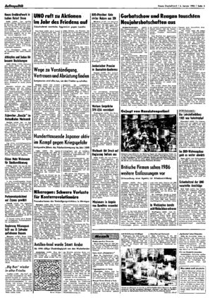 Der Generalsekretär des ZK der KPdSU, Michail Gorbatschow, und der Präsident der USA, Ronald Reagan, haben vereinbarungsgemäß Neujahrsbotschaften an das Volk der Vereinigten Staaten von Amerika bezieh...
