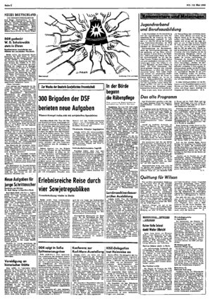 Karl-Marx-Stadt (ND). Ober 500 Wismut-Kumpel« mit ihren Angehörigen trafen sich am Sonnabend im Kulturpalast der Werktätigen Karl-Marx-Stadt-Siegmar. Die Kumpel sind Mitglieder der 300 Brigaden der DS...