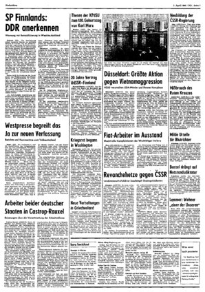 Helsinki (ND). „Die Anerkennung zweier deutscher Staaten als politische Realität in Europa" hat der Parteivorstand der regierenden Sozialdemokratischen Partei Finnlands im Zentralorgan der Partei „Suo...