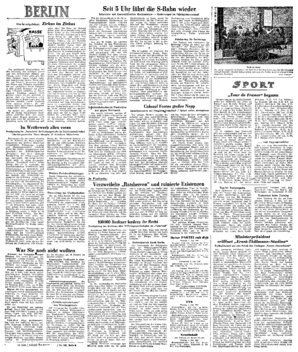 Der Verkauf von Fahrkarten für Reisezüge erfolgt ab sofort auf den Bahnhöfen der Westsektoren nur gegen Westgeld. Bewohner der sowjetischen Besatzungszone und des sowjetischen Sektors von Berlin erhal...