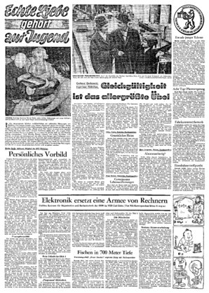 Im Rechenzentrum gibt es eine Bibliothek besonderer Art. Nicht Bücher, sondern Programme für die ZRA 1 werden hier aufbewahrt. Denn bevor der Automat eine bestimmte Aufgabe lösen kann,- muß ihm ein Pr...