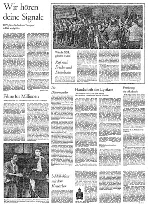 Kairo (ADN-Korr.). Die Informationsschau „Film und Fernsehen in, der DDR" wurde am Mittwoch anläßlich des 15. Jahrestages der DDR im Kairoer Ingenieurklub von Mohamed Arafa Zyan, Generaldirektor der V...