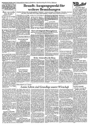 Berlin (ADN/ND). Vor dem Westberliner Abgeordnetenhaus hielt der Westberliner Regierende Bürgermeister eine als Regierungserklärung angekündigte Rede zum Berliner Abkommen ^wischen der Regierung der D...