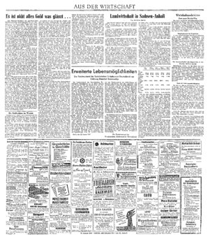 Unter dem Untertitel „Verschontes Land" wird eine Mitteilung aus dem Landtag der Provinz Sachsen-Anhalt wiedergegeben, daß gegenüber einer Kartoffelernte von 8,5 Mill. Zentnern im Jahre 1945 nur 2,5 M...