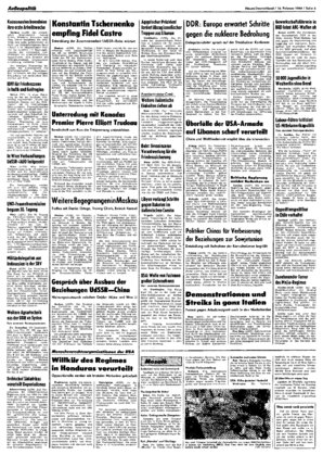 Kassel (ADN). Die Vorsitzende der Gewerkschaft ÖTV in der BRD, Monika Wulf-Mathies, hat sich gegen die Stationierung und Lagerung von nuklearen, biologischen und chemischen Waffen in der BRD gewandt. ...
