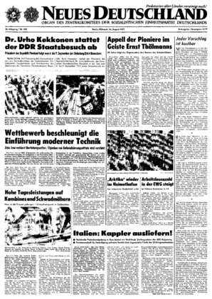 Berlin (ADN). Auf Einladung des Generalsekretärs des Zentralkomitees der Sozialistischen Einheitspartei Deutschlands und Vorsitzenden des Staatsrates der Deutschen Demokratischen Republik, Erich Honec...