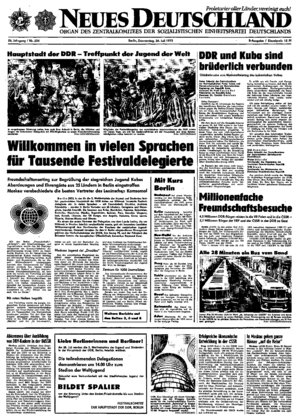 Aus der sowjetischen Hauptstadt berichtet unser Korrespondent Gerd Prokot: Ganz im Zeichen des Festivals stand am Mittwoch der Belorussische Bahnhof. Mit einem tausendfachen „Drushba" verabschiedete h...