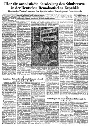 5. Der V. Parteitag stellte die Aufgäbet * die Kluft zwischen Schule und Leben, zwischen Theorie und Praxis, iu überwinden. Das ist die wichtigste Frage bei der sozialistischen Entwicklung der Schule....
