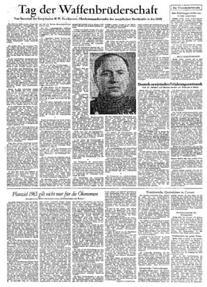 Zur Zeit der traditionellen „Woche der deutsch-sowjetischen Freundschaft" begehen. In diesem Jahr in der DDR die Angehörigen, der jungen Nationalen Volksarmee ;der DDR mit den Soldaten der sowjetische...