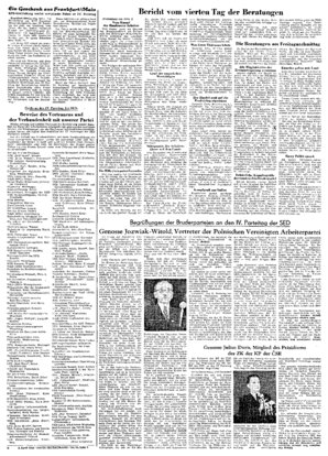 • Als Vertreter der KP der CSR richtete Genosse Julius Duris, Mitglied des Präsidiums des ZK der KP der CSR, an den IV Parteitag nachstehende Begrüßung: Werte Genossinnen und Genossen! Gestatten Sie m...