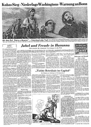 Während die ganze Welt in diesen historischen Tagen mit leidenschaftlicher Anteilnahme an der Seite des kubanischen Volkes steht und der Jubel über die völlige Vernichtung der Invasoren die Herzen . h...