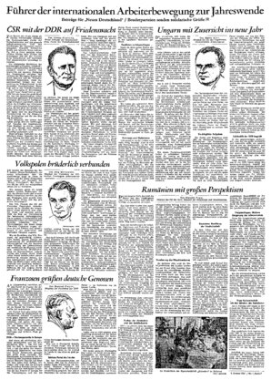 Hr um Beginn des neuen Jahres im ^ zweiten Fünfjahrplan entbietet die Kommunistische Partei der Tschechoslowakei und das gesamte tschechoslowakische Volk den Werktätigen der Deutschen Demokratischen R...