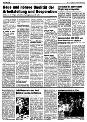 Bertin (ND). Im Gebäude der Botschaft der UdSSR fand am Freitagvormittag eine nicht alltägliche Pressekonferenz statt: 8 Mitglieder der sowjetischen Regierungsdelegation antworteten zwei Stunden lang ...
