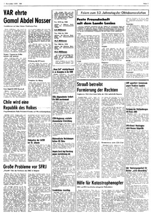 Präsident Allende empfing am Donnerstag die Delegation der UdSSR unter Führung des Stellvertreters des Vorsitzenden des Präsidiums des Obersten Sowjets Georgi Dsozenidse. Die Gäste überreichten ihm ei...