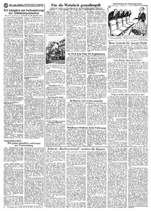 Köln (ADN). Die für den 21. Oktober angekündigte „Unterredung" iswisehen dem DGB-Vorsit«enüen Freitag und Adenauers Glelehschal» tungsbevellmäehtigten für die Gewerkschaften, Kaiger, igt verschoben wo...