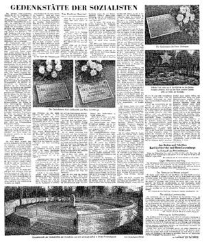 Am heutigen Sonntagvormittag werden die Berliner Werktätigen in endlosen Zügen durch die Stalinallee nach dem Zentralfriedhof Friedrichsfelde demonstrieren. Ihr Ziel ist die Gedenkstätte der Sozialist...