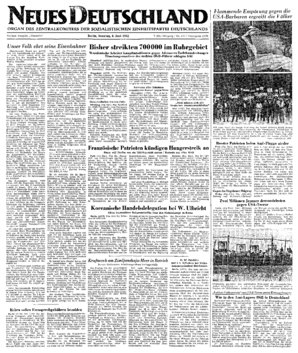 New York (ADN). In einem Telegramm an den Vorsitzenden des Außenpolitischen Ausschusses des USA-Senats, Connelly, forderte der Sekretär der amerikanischen Arbeiterpartei, Schutz er, eine Debatte des USA-Senats über die Frage der Ratifizierung des Generalkriegsvertrages und Beteiligung eines Vertreters der Arbeiterpartei an dieser Debatte ...