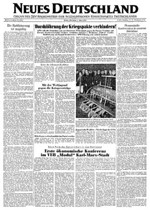 Neues ORGAN DES ZENTRALKOMITEES DER SOZIALISTISCHEN EINHEITSPARTEI DEUTSCHLANDS 10. (66.) Jahrgang / Nr. 50 / Einzelpreis 15 Pf Berlin, Dienstag, 1. März 1955 Berliner Ausgabe „Vorwärts" Neue Form der Parteiarbeit in den Betrieben Erste ökonomische Konferenz im VEB „Modul" Karl-Marx-Stadt Karl-Marx-Stadt (Eig ...