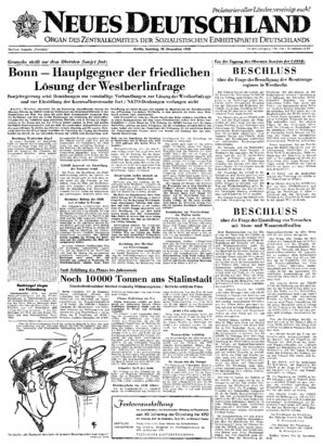 In diesem Zusammenhang ist es notwendig, besonders auf die Haltung der Regierung der Deutschen Bundesrepublik einzugehen, die offensichtlich sowohl innerhalb als auch außerhalb der NATO die Rolle des Hauptgegners einer friedlichen, auf einem Übereinkommen beruhenden Lösung der Berlinfrage übernahm. Der westdeutsche Kanzler Adenauer und seine Minister versäumen keine Gelegenheit, um der Lösung dieser Angelegenheit Hindernisse in den Weg zu legen ...