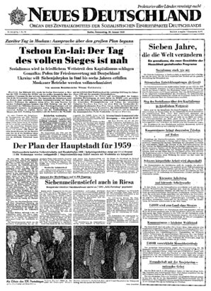 Genossen! Der Siebenjahrplan übt tiefen Einfluß auf die gesamte Internationale Situation aus und wird ein neuer Triumph des Marxismus-Leninismus sein. Unsere Er* folge .bei der Erfüllung des Plans werden dem Sozialismus Millionen neuer Anhänger gewinnen, werden zur Festigung der Kräfte des Friedens und ...