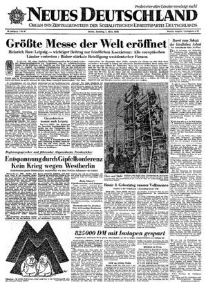 Rund 45 örtliche volkseigene Berliner Industriebetriebe vertreten auf der diesjährigen Leipziger Frühjahrsmesse mit ihren Exponaten die Hauptstadt. Das Angebot der volkseigenen Betriebe, das von Maschinen über Industrielle Konsumgüter bis zu hochwertigen Lebens- und Genußmitteln reicht, wird durch die ...