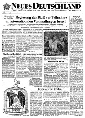 Die Regierung der Deutschen Demokratischen Republik weiß sich eins mit den nationalen Interessen des gesamten deutschen Volkes und den friedlichen Interessen der europäischen Völker, wenn sie mit all ihren Kräften für den Abschluß eines Friedensvertrages mit Deutschland eintritt; Die 14 Jahre nach Abschluß ...