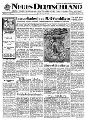 Berlin (ND). Am'heutigen Tage begehen die Mädchen und Jungen aller Länder den .Internationalen Kindertag. In der Hauptstadt der DDR war bereits am Sonnabend der Pionierpark „Ernst Thälmann" in der Wuhlheide Treffpunkt der Berliner Kinder. Unter dem Motto „Für eine friedliche und glückliche Zukunft aller Berliner Kinder" feierten Zehntausende Pioniere und Schüler mit ihren Eltern und Erziehern das große Fest der Berliner ...