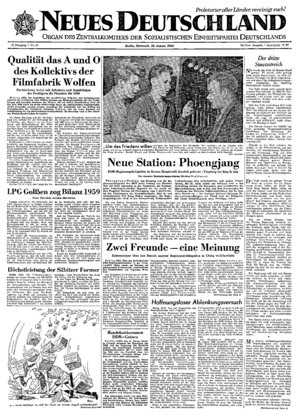 Peking (ND). Über den Aufenthalt der DDR-Regierungsdelegation in der Volksrepublik China wurde am Dienstag ein gemeinsames Kommunique veröffentlicht. Das Kommunique hat folgenden Wortlaut: Auf Einladung der Regierung der Volksrepublik China weilte vom 9. bis 19. Januar 1960 eine Regierungsdelegation ...