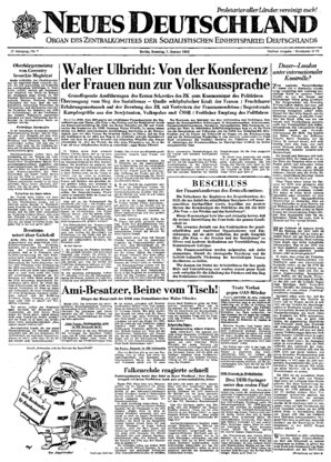 Berlin (ND). Die Pressestelle des Ministeriums tteß, Innern teilt mit; Die infolge ungenügender Schutzmaßnahmen der westzonalen Behörden im Raum Düsseldorf grassierende Pockenseuche zwingt die staatlichen Organe, entschiedene Maßnahmen zum Schutz der Gesundheit und des Lebens der Bürger der Deutschen Demokratischen Republik zu ergreifen ...