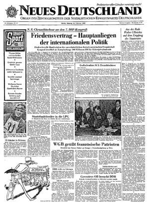 Genosse Erich Wirth, Mitglied des Zentralkomitees, ging auf den gestern im „ND" veröffentlichten Vorschlag Albert Nordens ein, die Einführung von Keramikplättchen an Stelle von Drehstählen stärker zu unterstützen. Er forderte, bereits bei der Ausarbeitung der Technologie die obligatorische Anwendung von sowjetischen Erfahrungen festzulegen ...