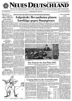 „In Westberlin entwickelt sich eine gefährliche Verschwörung gegen den Frieden. Das Hauptziel * der Bonner und Westberliner Revanchisten besteht darin, die Großmächte gegeneinander zu hetzen, einen gewaltigen internationalen Konflikt zu provozieren und schließlich einen neuen Weltkrieg heraufzubeschwören ...
