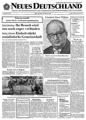 Berlin (ND). Auf der Rückreise von dem Staatsbesuch in der Volksrepublik Bulgarien wird sich der Vorsitzende des Staatsrates der Deutschen Demokratischen Republik und Erste Sekretär des ZK, Waltet Ulbricht, in Belgrad aufhalten, wo er mil dem Präsidenten der Sozialistischen Föderativen Republik Jugoslawien und Generalsekretär des Bundes der Kommunisten Jugoslawiens, Josip Broz-Tito, zusammentreffen wird ...