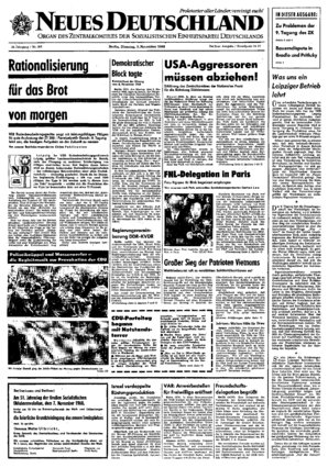 Kommunique der Sitzung vom. 4. November 1968 Berlin (ND). Am Montag, dem 4. November 1968, tagte in Berlin, der Hauptstadt der Deutschen Demokratischen Republik, unter dem turnusmäßigen Vorsitz der Liberal-Demokratischen Partei Deutschland« der Zentrale Demokratische Block der Parteien und Massenorganisationen ...