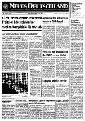 Unsere volkswirtschaftlichen Aufgaben für 1971 haben einen gemeinsamen Nenner: Es geht darum, die ökonomischen Gesetze bewußt und schöpferisch anzuwenden und so die Vorzüge des Sozialismus umfassender zum Wohle des ganzen Volkes zu nutzen. Als das wichtigste Instrument hierfür bezeichnete die 14. Tagung des ZK »eine auf hohem Niveau stehende Planung auf oJlen Leitungsebenen" ...
