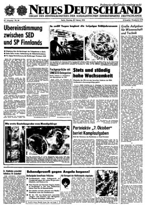 (Fortsetzung von Seite 1) entsprechend der Neutralitätspolitik Finnlands Frieden und Entspannung in Europa zu fördern. Die Sozialdemokratische Partei Finn-' larids tritt nachdrücklich für die Aufnahme der DDR und der BRD in die UNO und ihre SpezialOrganisationen ein. Sie unterstützt die Aufnahme der DDR in die Weltgesundheitsorganisation und die gleichberechtigte Teilnahme der DDR an der UNO-Umweltschutzkonferenz im Juni 1972 in Stockholm ...