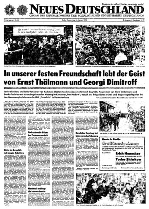 In einheitlicher Front, fest zusammengeschlossen um die Sowjetunion, gehen die DDR und die Volksrepublik Bulgarien unbeirrbar voran in dem Streben, den größtmöglichen Beitrag zur Festigung der Einheit und Geschlossenheit der sozialistischen Staatengemeinschaft, zur Stärkung der Positionen des Sozialismus zu leisten ...