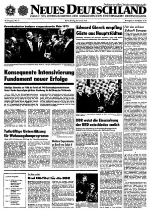 „Der Grundlagenvertrag zwischen der DDR und der BRD verbietet bedingungslos das von der Bundesrepublik früher praktizierte Repräsentieren ,ganz Deutschlands' beziehungsweise auch der DDR." Das unterstreicht die finnische Zeitung „Kansan Uutiset" am Sonntag in einem Beitrag zu den Störaktionen der BRD-Regierung ...