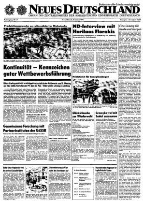 In seinen Antworten auf die Fragen des ND verwies der Erste Sekretär des ZK der KPG auf den begrenzten Charakter der Veränderungen, die durch die Ablösung der militärfaschistischen Junta in Athen von oben erfolgten. Jetzt gehe es um den weiteren Prozeß in Richtung auf eine wirklich neue Demokratie des Volkes in Griechenland ...