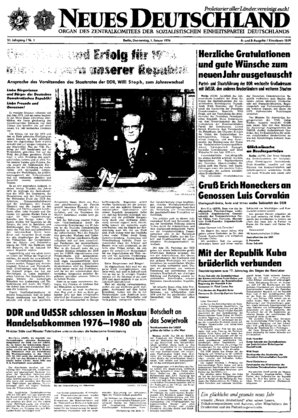 Liebe Burgerinnen und Bürger der Deutschen Demokratischen Republik! Liebe Freunde und Genossen! In wenigen Stunden vollendet sich das Jahr 1975, und ein neues beginnt. In der Mitte dieses Jahrzehnts überblicken wir heute gleichzeitig den zurückliegenden Zeitraum von fünf Jahren und bereiten uns auf einen neuen, bis 1980 reichenden Abschnitt vor ...