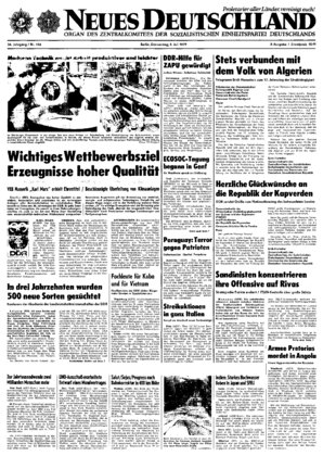 Windhoek (ADN). Südafrikanische Streitkräfte sind erneut in Angola eingedrungen und haben während einer dreitägigen Militäraktion gegen Angehörige der Südwestafrikanischen Volksorganisation (SWAPO) zwölf Menschen ermordet. Wie der Oberbefehlshaber der südafrikanischen Okkupationstruppen in Namibia, General Geldenhuys, am Mittwoch in Windhoek weiter mitteilte, seien in den letzten 13 Tagen insgesamt 19 SWAPO-Mitglieder bei ähnlichen Aktionen auf angolanischem Territorium ermordet worden ...