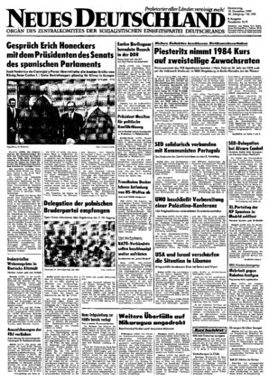 Naihriihten und Kommentare Neues Deutschland / 15. Dezember 1983 / Seite 2 Vereinbarung 1984/85 in Hanoi unterzeichnet Hanoi (ADN). Ein Protokoll über die Zusammenarbeit zwischen der Akademie der Wissenschaften der DDR, dem Institut der Wissenschaften und dem Komitee für Gesellschaftswissenschaften Vietnams für 1984/85 ist in Hanoi unterzeichnet worden ...