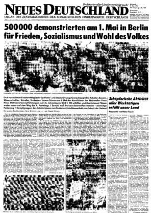 Liebe Berlinerinnen und Berliner! Liebe Genossen und Freunde! Liebe ausländische Gäste! Den großen Traditionen der Arbeiterklasse verbunden und der Aufgaben bewußt, die aus der stürmisch bewegten Zeit erwachsen, begehen wir gemeinsam mit den arbeitenden Menschen in aller Welt diesen 1. Mai, den Kampftag der internationalen Arbeiterklasse und aller Werktätigen ...