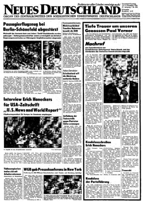 zu Fragen^ der Rüstungsbegrenzung und Abrüstung, sowie zu den Beziehungen zwischen der DDR und den USA Stellung nahm. Im Verlaufe des Interviews äußerte Erich Honecker seine Meinung zu den jüngsten Beschlüssen des NATO-Rates.