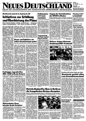 Berlin (ND/ADN). Ein neues zentrales Gebäude für die Evangelischen Kirchen in der DDR ist am Donnerstag in Berlin übergeben worden. Es trägt den Namen des Theologen und antifaschistischen Widerstandskämpfers Dietrich Bonhoeffer, der am. 9. April 1945 im faschistischen Konzentrationslager Flossenbürg ermordet wurde ...