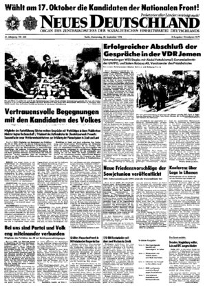 New York (ADN). Der sowjetische Entwurf eines „Weltvertrages über Gewaltverzicht in den internationalen Beziehungen" ist am Mittwoch bei den Vereinten Nationen in New York veröffentlicht worden. Der Minister für Auswärtige Angelegenheiten der UdSSR, Andrej Gromyko, hatte am Dienstag an UNO-Generalsekretär Dr ...